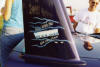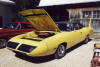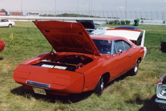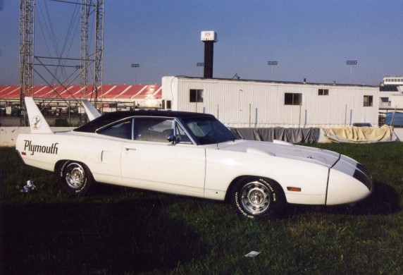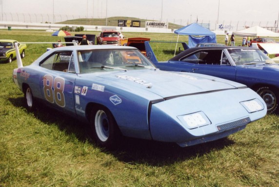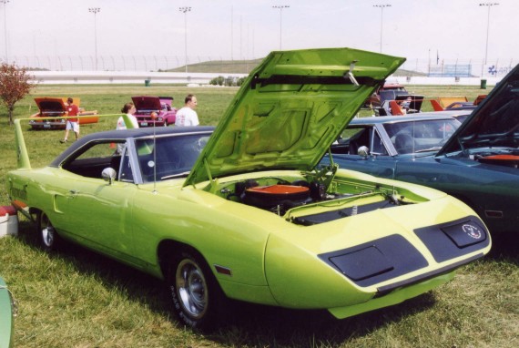 Saturday morning, everyone headed out to Gateway International where we had to wait in a long, hot line before we were able to make our way to the special Winged Warriors/NBOA parking area reserved for the members. Some members set up their tents and chairs, anticipating the need for a shady spot later in the day, while others immediately took off for the huge all-Mopar swap meet. Still others went over to watch the drag racing action. Dot and Cotton Owens were situated under a tent with their Dodge racecar right in the middle of the Winged Warriors/NBOA members. Dot sat at a long table and sold T-shirts from "Cotton Owens Garage" and postcards, while Cotton posed for pictures and signed autographs all day. At the end of the WW/NBOA, Mike Eberhardt had the Turbine car on display, occasionally starting it up to give people rides.