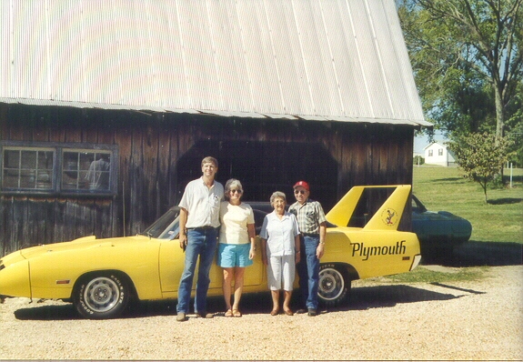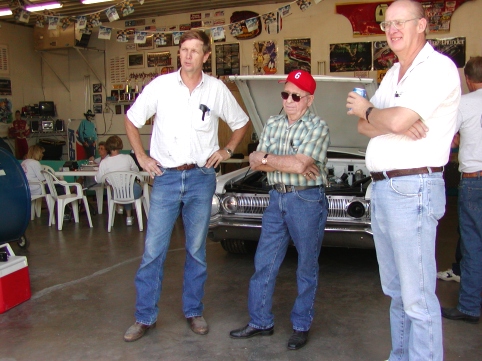 Winged Warriors/NBOA members had a special invitation on Friday (a day prior to the opening of the Monster Mopar Weekend) to Rich and Judy Bolzenius's home in Union, Missouri for a reunion of retired workers from the St Louis Assembly plant. The special guests at this gathering were Cotton and Dot Owens, and their friend Dean Yeargin, who drove them out from Spartanburg, SC to spend the weekend with us. Cotton had been busy during the previous couple months building a replica of his 1964 Dodge racecar that David Pearson drove. Dean helped with the restoration and their hard work culminated in them hauling the car (finished except for firing up the engine) to the event. The Dodge was pushed out of the trailer and spent the day on display inside of Rich's shop, where we congregated to talk, take pictures and eat a wonderful feast of fresh grilled brats, burgers and fixin's. (You can read a transcript of the speech that Cotton gave to our group elsewhere on this website).