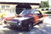 Member Gene Lewis arrived with his very unique car hauler--a restored 1960 Dodge C-500 truck. Gene tells us the "C" means Low Cab Forward, ie: quasi-subnose design and the "500" refers to the truck being a 2-ton. It has its original Polysphere 318 (aka the wideblock 318) that has been bored out to 410 cid with the usual engine modifications and a dual 4 barrel intake manifold set-up from a '59 Sport Fury! Gene swapped the original 4-speed tranny for a similar-vintage 5-speed transmission but it still has its original 2-speed rear axle.