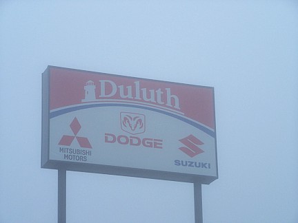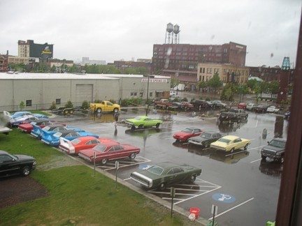 From Cass's shop, we caravanned to Cloquet Dodge in Cloquet, where we were invited to join a local cruise in. Only a couple of local cars showed up, so the show 'n shine was almost all Winged Warriors cars. The dealership had a big grill set up and cooked hot dogs for us. We really enjoyed the hospitality at Cloquet Dodge but it was a very cold and windy evening, so we stayed a little over an hour and then everyone headed back to Canal Park Lodge to settle in for the evening.