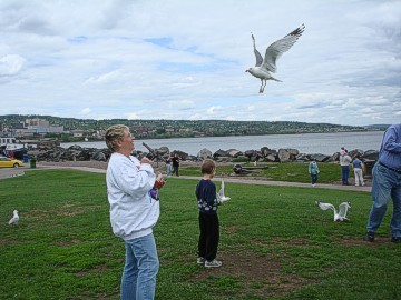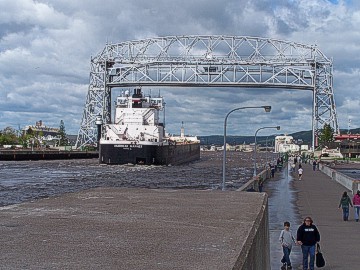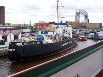 Friday morning, some of the members who had arrived later in the week took off for Cirrus Aircraft to take in the tour they had missed. We originally had a train ride to Two Harbors planned for this day, but since it would have taken all day and the time we would have had to spend at Two Harbors was very minimal so we decided to cancel that event. In its place, we had a reserved spot on one of the Vista Fleet harbor tour boats. We discovered at the last minute that the tour boat company had sold our seats to a group of polka dancers because they had more people in their group than we did and the company could make more money off of them! Some of our members decided to go on a later boat ride and had a great time touring the Duluth harbor. We saw a large freighter being loaded with coal, the huge docks at all of the lakeside industries where iron ore, scrap metal, grain, and fuel were loaded onto freighter ships, an off shore crane, even a scrap yard of steel. On the return trip to the dock, we passed under the lift bridge between Duluth Harbor and Lake Michigan into the lake and from there we could see the Canal Park Lodge where our cars sat and the boardwalk behind the hotel.