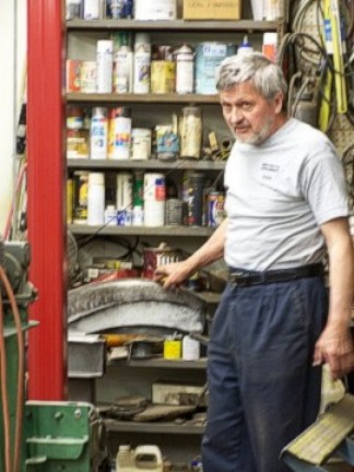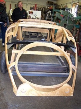 The members returned to the Canal Park Lodge and dispersed for lunch and then gathered back at the Lodge in mid-afternoon to leave for a cruise to Moose Lake. Outside of the town of Moose Lake, we followed a windy one-lane gravel road back to a non-descript wooden building about the size of a four-car garage. Brightly colored Mopars pulled up around the building, parking along the road and up in the yard, and a medium-built gentleman with a huge grin stood in the open doorway of the shop. The soft-spoken 65-year-old man was Cass Nawrocki. He invited us into his shop with a very warm welcome and began showing us just what it is that he does. Cass began working in his father's metal fabrication shop in Poland when he was just seven years old. After moving to America, he continued to perfect his special art of hand-fabrication of wood frames and metal bodies and car parts. The day we were there, Cass had four different projects he was working on, two identical car bodies that would be shipped to Russia and two other cars for customers. He told us he has built many cars for this man in Russia and always accepts a six-figure personal check for each car. There are never any receipts, as Cass joked that the Russians do business by their word and honesty. They know where you live and have their own form of justice!