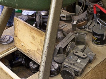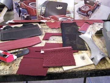 Cass showed us his old English Wheel that did not have the proper sized or shaped pulleys for shapes that he wanted to use, so he built the wheels for his own projects. All of the equipment in his shop is very old, so if anything breaks or wears out, he also fabricates the parts to fix it. We were amazed as he demonstrated on several of his machines the techniques he uses to fabricate several different pieces of trim and panels. Cass builds his own frames, body, bumpers, stainless trim, brass mouldings, and even makes custom exhaust for old Mercedes and Roll Royce, with the three pipes protruding through the side of the hood. Lying across one machine was an antique car bumper that Cass had built. Along the walls of the shop are shelves and bins full of the different tools, wheels, etc that he has built. Cass claims there is nothing he cannot fabricate out of metal.