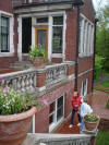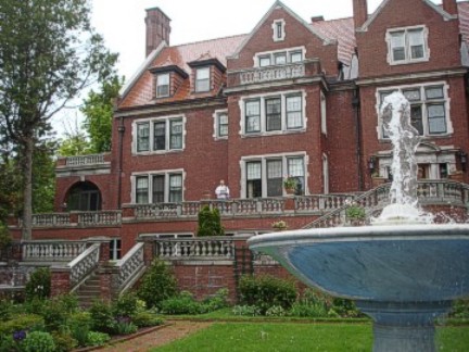 Wednesday morning, it was again foggy, misty and cold as we departed from the Lodge for the drive up North Shore to Glensheen Mansion. Completed in 1908, this huge mansion was home to Clara and Chester Congdon and their seven children, all of whom are now deceased. Almost all of the original furniture, fixtures and furnishings are still in place. The Congdons were very affluent and the mansion has many state-of-the-art facilities, including the garden with fountain, a beautiful stables for their horses and exceptional living quarters for their servants. We were welcomed to take photos outside the mansion, however, once again cameras were not allowed inside. Our tour guide showed us through the many beautiful rooms, including several exquisitely decorated dining rooms that were used for different guests, sitting rooms, library, the Congdon's separate bedrooms and a room they also shared on occasion, the children's bedrooms, guests' bedrooms, the maids' rooms, the massive kitchen and pantry, etc. Although the guides don't volunteer the information, we asked about the notorious murder that took place in the mansion. We were shown the room where this event took place and heard the story of what happened...or maybe it was just the story the tour guides are instructed to tell? After touring the home, we walked through the horse stables where the walls and floors are white tile and there was running water in a stainless steel sink for each horse. From there we wandered through the gardens where the flowers were struggling to grow in the spring cold. We paused at the pool and fountain, where you could look up for a full view of the beautiful mansion. Back at the parking lot, we were all relieved to get inside our cars and turn the heaters on!