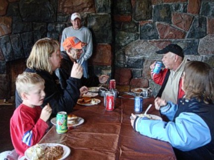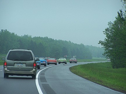 Back at the Lodge, we had just gotten our cars parked when the Heavens above opened up and rain came down so heavy it was hard to see through it. As mentioned early, our scheduled car show at Archer Brothers was canceled and while some of us braved the pouring rain and wind to run across the street for a Dairy Queen, some of the members stayed at the Lodge and ordered pizza delivered. That evening was spent with our group lounging around the fireplace and catching up with old friends and making new friends. It was a truly miserable night outside with gale force winds and for those of us who had lakeside rooms there wasn't much sleeping as the thunderous waves beat against the lakeshore all night.