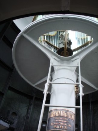 From the lighthouse keeper's house, we were led across the yard to the actual Split Rock Lighthouse, a very majestic looking building standing tall in the dense fog right at the lake's rocky edge. Once inside we were told the story of Split Rock and were led up a very steep black wrought iron spiral staircase to see the actual light. It's hard to imagine how enormous this light is--it's large enough that a man can get inside of the light assembly to clean the prisms that magnifies the light. Now this wasn't an electric light, as there was no electricity. The beam was created by a flame, therefore the assembly had to be cleaned and maintained frequently. It was so hot and bright that the light had to be shut down when maintenance was needed. There was a huge gear assembly that turned the beam with a timer that was quite innovative for it's time to control the speed. The lighthouse also had a separate brick building that held a very obnoxious horn (that we did hear!) that was steam powered and was used during daylight in the fog when the light couldn't be seen. An inspector showed up at random who was quite strict about the appearance and cleanliness of the lighthouse and the keeper's house. The lighthouse keeper's children were taught to watch for the inspector's boat and warn the keeper and his wife that the inspector was coming so they could be dressed in their proper attire and have everything ready for his inspection.