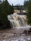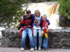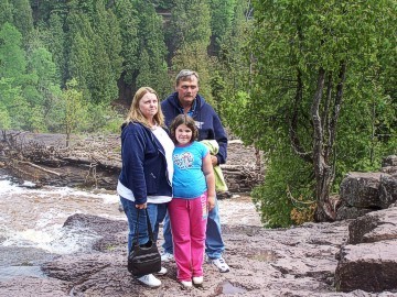 We left the lighthouse in the late morning and drove in the fog to Gooseberry Falls for our picnic. We had a nice rock shelter house complete with a big fireplace that was much needed on this day. It was 40 degrees and windy and damp that day so the first order of business was a group of the members built a fire in the fireplace while others put out a delicious meal of baked beans, salads, pulled pork. A few of us had to brave the cold to stoke up the grills and cook burgers and dogs outside. We had to guard our grills diligently as the huge seagulls sat on the roof waiting to steal any meat left unattended. After stuffing ourselves with great food, everyone enjoyed a big piece of delicious cake adorned with Mopars and the club logo. While a few members stayed at the shelter house to clean up the mess, the rest of us went on a hike to see the falls. The advertising brochures claimed it was a 15 minute hike to the falls. In reality, it was a lot further to actually get to the top of the falls and see this grand beauty. We hiked for the better part of an hour and some of the hiking path was pretty crude due to lots of recent rain. But it was worth the effort as we reached the top of the falls and took photos of our members. By the time we got to the top of the falls, the weather had improved greatly and it was now a pleasant sunny day. We walked across the bridge at the top of the falls and hiked back to the shelter house on the other side, seeing many pretty flowers along the way. Back at the shelter house we gathered up our group and headed for Duluth Dodge.
