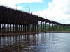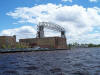 After our boat ride, some of us decided to walk across the lift bridge out onto the island where all the residents were holding a huge garage sale. When we were about halfway across the bridge, a bell sounded and an electronic voice boomed that the bridge would be raising and anyone that was on it had less than a minute to get off! It's a LONG distance across the bridge and you have to run hard all the way to make it in that amount of time, and no, they don't wait for you! It is very, very windy on the bridge and hard to stand up at times. This bridge is the only way that the residents on the island have to get to the mainland and the employers in the city allow extra time if their employees are late for work. There was a very long line of cars waiting to get across the lift bridge when we got to the other side after the bridge started raising. It was at least a 10-15 minute wait for the bridge to be lowered back down. Obviously the residents are used to this, as they were sitting in their cars reading books, or standing outside talking to each other; no one seemed to be upset about the long wait. It's just a part of their lives. You can see in the sequence of photos below how the lift bridge works. Incidentally, the lift bridge is illuminated at night and was quite a beautiful sight from our hotel.