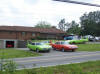 Departing Arrington Engines, the group started what would prove to be an eventful return trip to Lynchburg. About half-way back in Chatham, Carl Swanson called on the cell phone to say he had no oil pressure. We immediately stopped to check this out, and after several checks, we started the car and decided things were not catastrophic. A wiggle of the lead on the sending unit seemed to put things right. We departed again, not making a quarter mile when Stuart Sutton's Birdable let it be known it wanted more attention by quitting under a railroad underpass. What appeared to be Stuart's second attempt at increasing the Birdable fuel mileage by running a partially obstructed fuel filter was repaired by our erstwhile road crew of Mopar medics replacing the fuel filter again. Stuart then took off, showing to all that his plan was obviously set such a pace to maximize coating distance should the Birdable run short of bird seed again (it did). Continuing to Lynchburg, the caravan came upon the Birdable across the street from the Lynchburg airport, about three miles from the Wingate. Even if Stuart had gotten the Birdable up to the world record speed (and it was not for lack of trying), I doubt he could have coasted the distance. At this point, our dedicated team of Mopar medics decided that the fuel pump was the problem and I went home, hooked up the enclosed trailer, and with the "Mopar manpower" we loaded the Birdable and returned to the Wingate. Another diagnosis session with the Mopar medics ensued, and the consensus was to replace the fuel pump. Proving that several of our members are familiar with the operating principal of "the 7 P's" (Proper Prior Planning Prevents Piss-Poor Performance) and that several of our members manage to store nearly the operating inventory of a NAPA or Advance Auto store in a B-body trunk, a new fuel pump was installed. However, this did not seem to fulfill the Birdable's need for sustenance, and a mechanical marathon ensued to install an electric fuel pump to get the Birdable under power for loading for the trip home. (Stuart finally diagnosed the problem of a defective fuel pump push rod after getting the Birdable home).