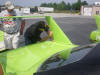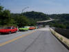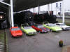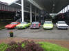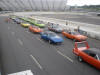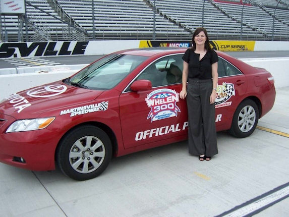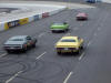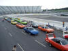 Once there, the group was lined up at the start/finish line for a group shot, then the cars were brought across individually for a photo op. Then the fun began as the group ventured out onto the track turning laps behind the pace car. The pace car kept up a respectable speed, giving members a feel for what it must be like driving the "paperclip" in a race car. There were no instances of trading paint, and no "Martinsville stripes" were issued. After this session, the group did its best impression of a NASCAR pit crew in the garage area as Stuart Sutton's Birdable refused to start, and the fuel filter was replaced.