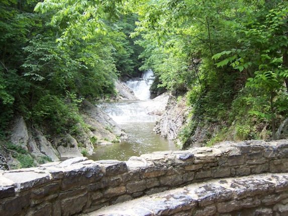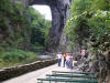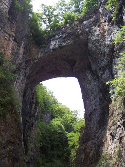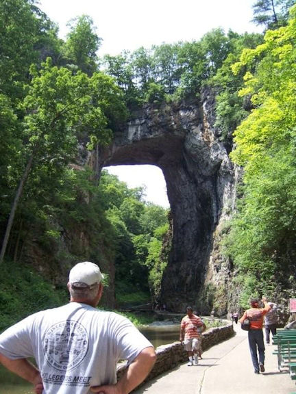 The group then journeyed to Natural Bridge, one of the natural wonders of the world, a stone bridge cared out by Cedar Creek, which carries U.S. 11 over Cedar Creek. The bridge spans more than 40 feet, is over 100 feet high, was surveyed by a young George Washington and initially purchased from England by Thomas Jefferson. While George had not "slept here", he did climb up the rock wall and carve his initials.