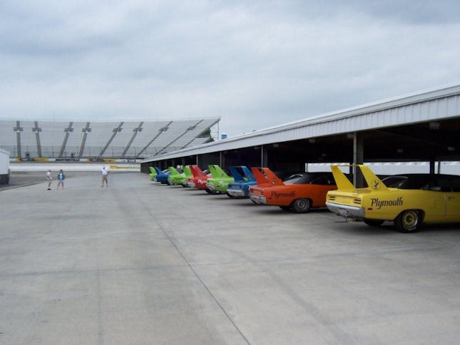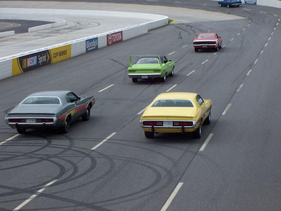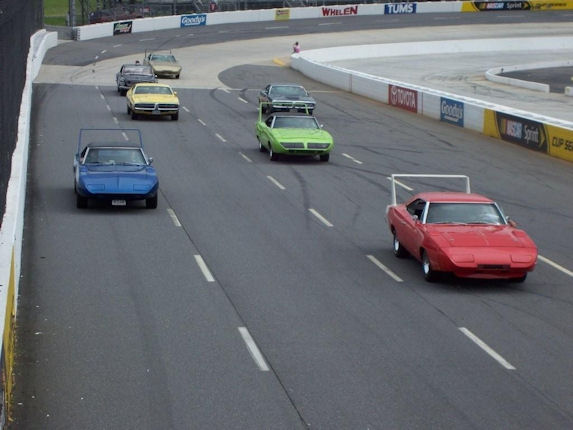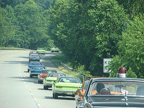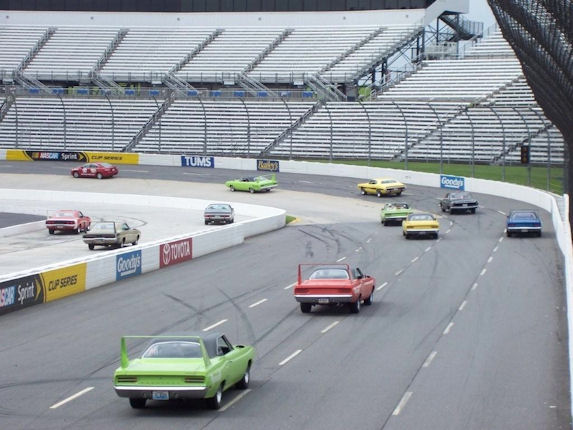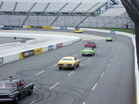 Friday morning appeared clear, warm and humid and an early departure was required to make the run ot Martinsville Speedway. By this time, the caravan included 15 winged cars, the '69 RoadRunner convertible, the Highway Patrol and a pair of '74 Chargers. Chuck Royster, possibly out newest member, ran ahead and shot a video of the group heading down U.S. 29 en-route to Martinsville.