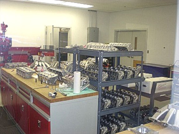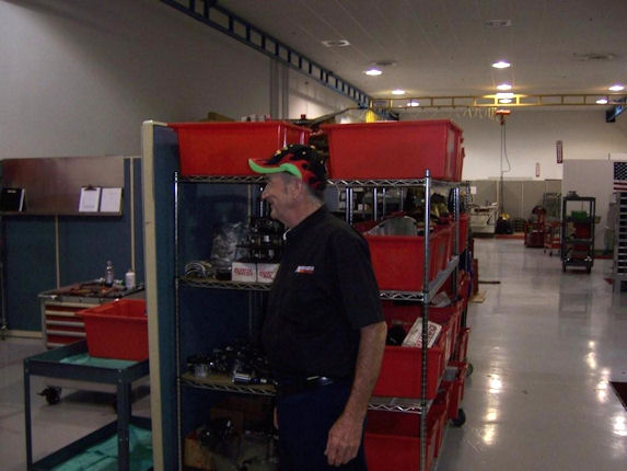 After deciding that even on our best day we were not threat to Matt Kenseth's "Killer Bees", we departed the track for lunch at Buddy Arrington's restaurant. As were were enjoying lunch, Buddy arrived and proved his mettle by having a meal from his own buffet. After spending time talking about the "old days" and the "urban legend" about all the stuff supposedly buried by Petty Enterprises on orders from Chrysler, we made a group assault on a gas station (below) and headed to Arrington Engines following Buddy.