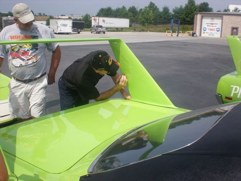 Buddy and his wife, Jeanette, could not have been more gracious or hospitable hosts, taking the group for a tour of the entire facility, including the adjoining Camping World Truck team shops, answering any and all questions, and allowing the group to roam the shop at will. Buddy then gave the group vintage postcards of the #5 Daytona he drove "back in the day", as well as signing memorabilia for the group. Buddy then signed several members' cars and had his photographer get a group shot of the cars.