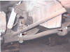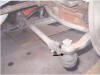 Remove the nut off the front of the lower control arm shaft and slide the lower control arm back out of the K-frame along with the strut rod. The first photo below shows the lower control arm and shaft. Remove all the bushings from the strut rod. Note the order in which the bushings and washers are installed on the original rod as shown below in the photo at right.