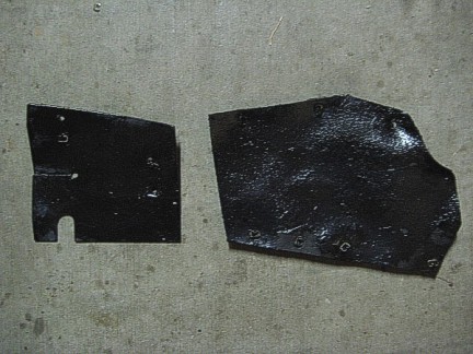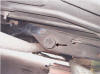 Take off the access opening covers (one at each end of the upper control arm). These are just rubber flaps that are held on with little clips that you can pry off. The front cover on the passenger side of the car has two small bolts holding it on. The rear cover on the passenger side goes in from the engine side of the inner fender. The photos below show the covers on the car (arrows) and off the car. There are two covers on each side.