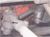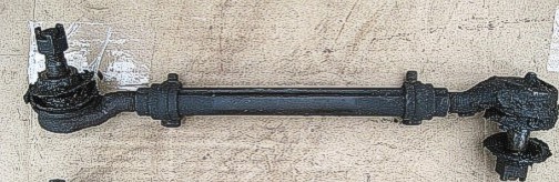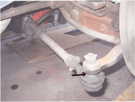 Next remove the tie rod assembly by removing the cotter key then use a 3/4" socket to remove the nut from both ends of the tie rod. Separate the tie rod end with a pickle fork. Insert the fork between the tie rod end and the knuckle arm behind the brake dust shield. Separate them by hitting the fork with a hammer. Repeat this procedure at the other end of the tie rod between the tie rod end and the center link.