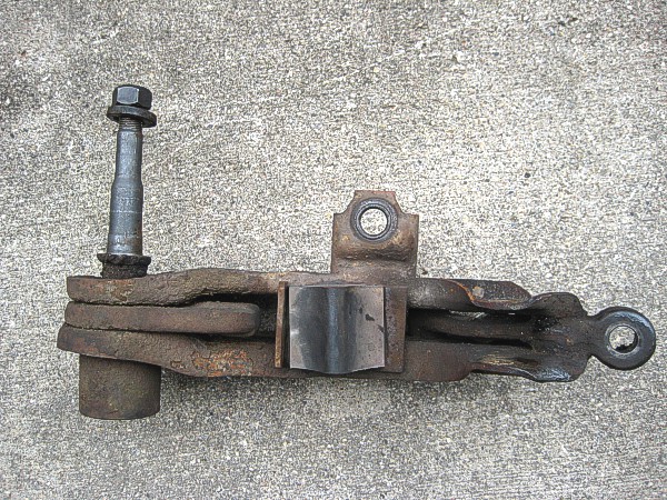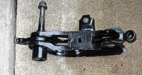 Install the swivel for the torsion bar adjusting bolt (swivel and bolt shown below) into the slot in the lower control arm and screw in the adjusting bolt until it reaches the place on the bolt where it was originally rusty (this will be close to the original right height).