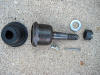 Install your new lower ball joint (shown below) on the lower control arm. The bolt goes through the hole from the bottom and the nut is tightened to 85 foot-pounds and the cotter key is installed (there's a hole through the stud that lines up with one of the slots in the nut).