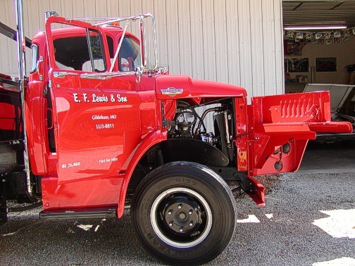 The truck was originally a combination grain bed, with flip-up sides for hauling cattle to market. As many of them were, it had been left outside in the elements for years after its usefulness had diminished. It was advertised for sale in the St Louis Post-Dispatch in December of 2000. I keyed in on it mostly due to the fact that it was cheap, and it was a Dodge. The body was pretty rough, and had I known how difficult it would be to make the repairs and/or find parts, I would have held out for a better vehicle to start with. I really liked the swing-out fenders this body-style has, and many people are amazed that this is a factory-engineered feature. 1960 happened to be the first year for this Low-Cab-Forward style, and Dodge produced the same style with relatively few sheet metal changes all the way through 1976.
