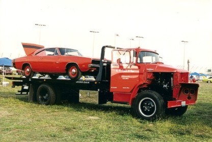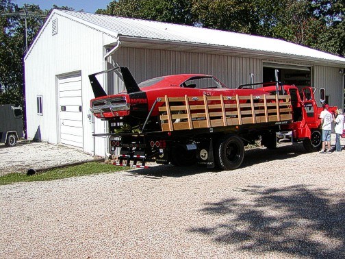 Once the truck's level of restoration became apparent, Norm Brandes (the same Norm that provided the block and built the Hemi engine for the R/T), kept suggesting that the truck would make a great car hauler. I had downplayed that suggestion since most car hauler beds with the upturned/fixed siderails do not lend themselves well for hauling construction materials. It wasn't until I checked into what Jerr-Dan could custom-build that I finally decided that a dual-purpose vehicle was the way to go. My rationalization was that by having the truck all refurbished, it would be dependable and could do work during the week, but perhaps haul a car to a show on the weekends. The combination roll-back bed, with a wood floor and oak stake-bed siderails allows both work and play options.
