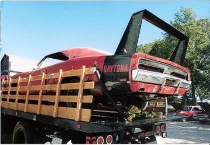 ***Gene's Charger and truck were awarded the "Best Mopar" sterling silver tankard award from the Mopar Musclecar Association of Great Britain at the WW/NBOA Fall Meet in September 2006. Congratulations Gene! The R4 Red Daytona is is pretty rough shape after having been pulled out of a barn in Iowa--yes, this will be a true "barn story" someday! We'll be looking forward to seeing it done.
