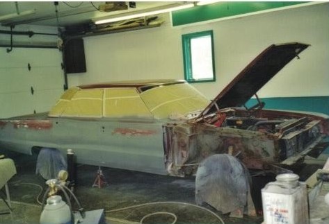 We brought the car home in the fall and parked it for the winter. In the spring, our Kevin needed a car as he was working on hid Diplomat cop car. He was not thrilled to be driving the '66 four-door, but it was his best option at the time. He drove the car most of the summer and we parked it again for the winter. In the spring we decided to freshen it up, remove the dings and put on new paint. Well, half-way through the project a good friend needed her Challenger painted so the four-door sat with fresh paint but needing assembly.