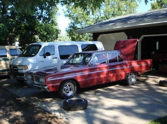 That summer, our kids took turns driving the four-door granny Coronet and our green '66 (HIs '66) to shows and cruise nights. It wasn't long before Kevin decided that the four-door is a neat car and was getting thumbs up as he cruised around. By the end of the summer, he was taking it on camping trips as well as car events and was having a ball.