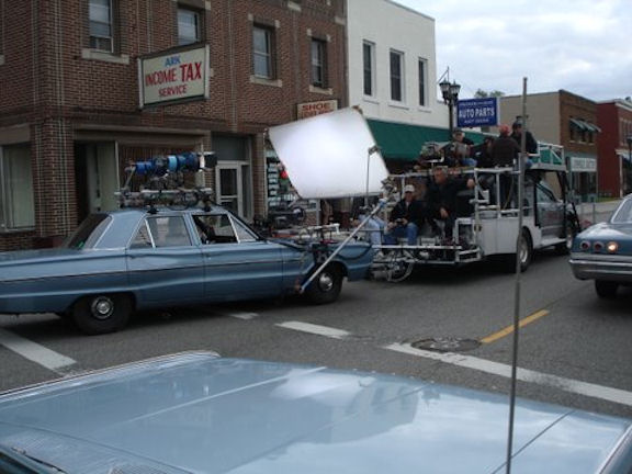 We were back the following day but did not stay to the end as they were going to shoot until 8:00 pm. We left the car there and were told they would be done the following Tuesday. We went to pick up the car on Tuesday but they had to shoot a scene over so we had to leave it one more day. The red Coronet is back home now but the four-door, from what we can tell, will play a starring role in the movie as most of the scene filmed while we were there revolved around that car and the person who we think is one of the lead characters.