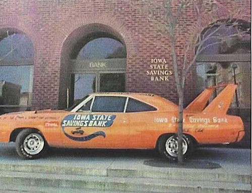 He remembers quite a bit about the Superbird pace car and I took notes as fast as I could. Lou Job was president of Iowa State Bank at that time, and he decided it would be good public relations to purchase a Superbird and sponsor it for a season as a pace car at Knoxville Speedway, and then raffle it off.
