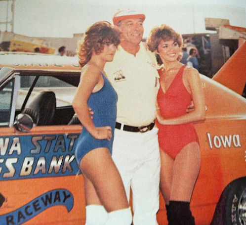 Wally Price, Knoxville’s pace car driver for many years, drove the Superbird pace car. When asked if it had a light bar or other equipment had been installed on the Bird, Frosty replied that they just turned the car’s flashers on when it was pacing the track. The vinyl top was removed and the car was painted TorRed, including the rear bumper. The graphics were done in blue, black, white and metallic silver. Officials had white satin race jackets with an orange round patch with a black outlined Superbird silhouette and white “Knoxville Raceway” and “Iowa State Bank” lettering around it on a black background.