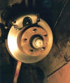 Each year and style of rotor has a different minimum thickness and discard specification. Any good machine shop will have the book with these listings and be able to determine if your rotor can be refaced or needs to be replaced. The rotor shown in Photo #5 had very heavy rust and some slight ridges from the worn factory riveted brake pads. It was just within it's .980" minimum thickness after refacing, and will have to be replaced next time. The machine shop that refaced our rotors gives the surface a final scuff with an air sander so the brake pads seat quicker.
