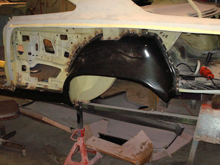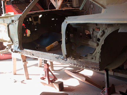 I was very pleased with the work at Total Performance. Benton had all the sheet metal that needed replacing removed by cutting out the spot welds. New quarters, lower extensions, trunk floor, Dutchman panel, rocker panels and outer wheel housings were installed.