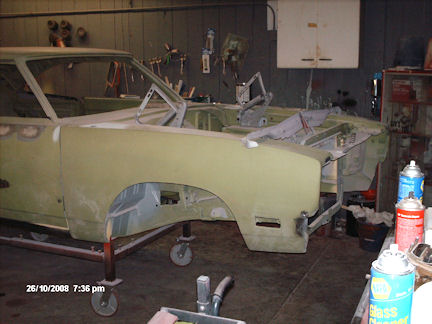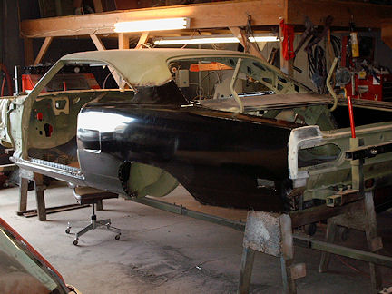 So on a cold January 16th day in 2009, the GTX left for Carroll. Several unforeseen things slowed up the restoration. The first was getting the new AMD sheet metal. The four to six weeks to get the new quarter panel ended up to be six months. However, the wait was worth it as the quality of this new sheet metal is excellent.